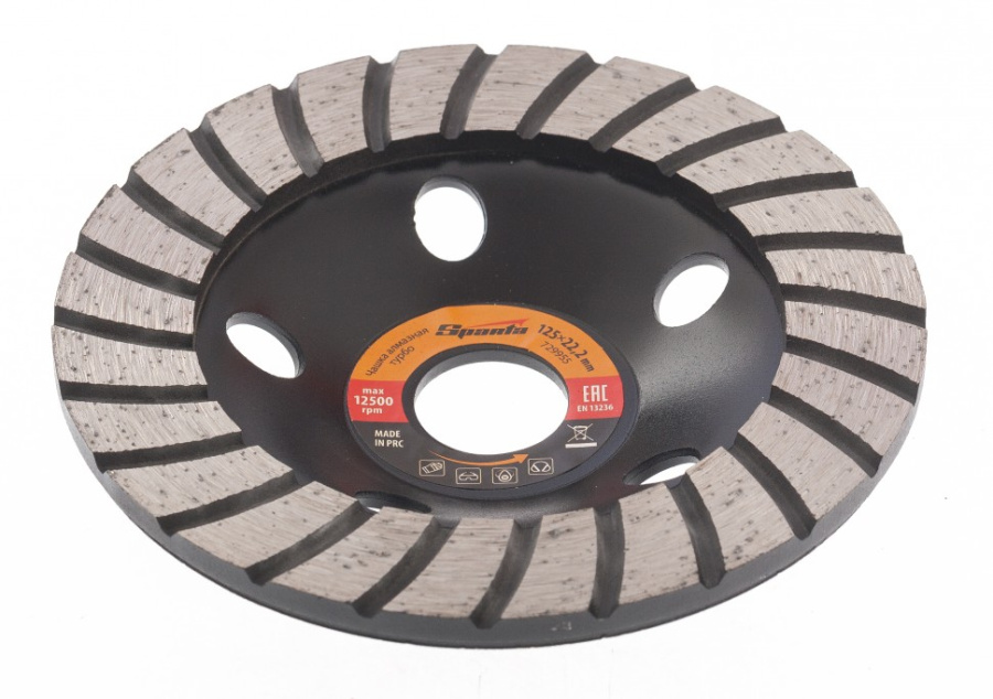 Чашка алмазная "Турбо" ТМ SPARTA предназначена для шлифования камня, бетона, мрамора, гранита, кирпича.