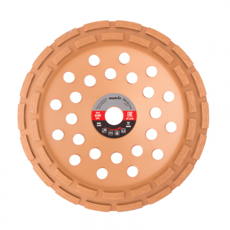 Чашка алмазная "Двухрядная" ТМ Matrix предназначена для интенсивной грубой зачистки бетона, мрамора, камня, кирпича, гранита.