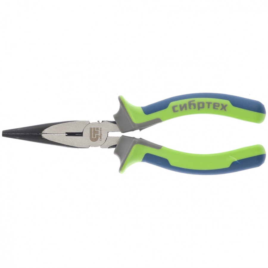 Длинногубцы прямые 160 мм, фосфатирование, трехкомпонентные рукоятки Сибртех 17155
