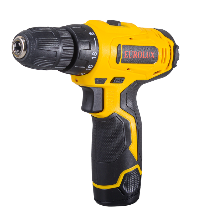 Аккумуляторная дрель-шуруповерт Eurolux ДА-12/2Li – ручной электроинструмент с регулируемым крутящим моментом, предназначенный для закручивания и откручивания шурупов, саморезов, винтов и других видов крепежных изделий, а также сверления отверстий в различных конструкционных материалах.