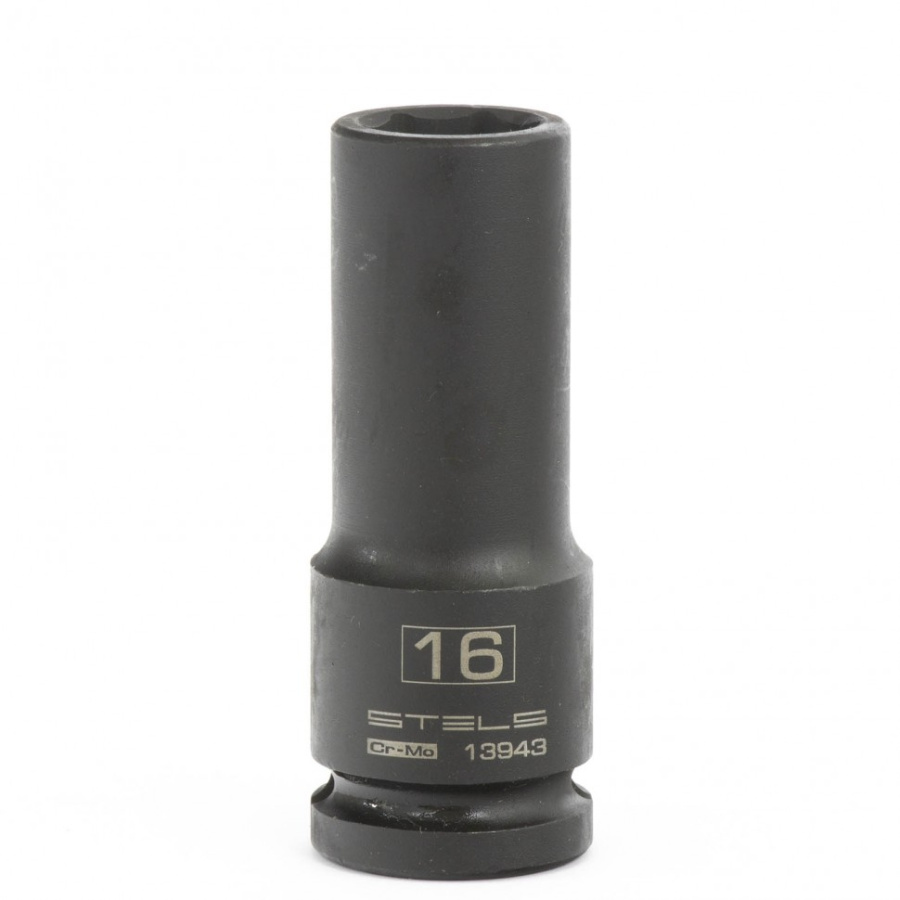 Головка ударная удлиненная шестигранная, 16 мм, 1/2, CrMo Stels 13943
