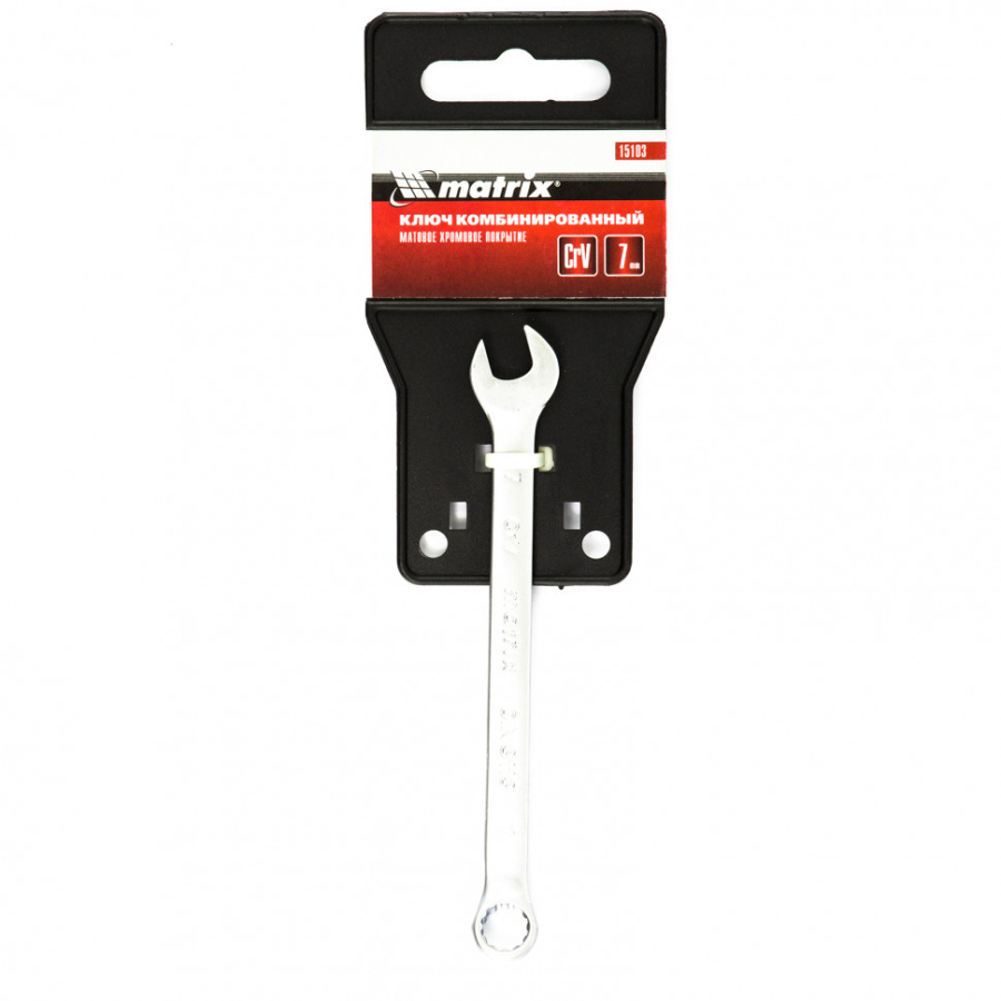 Ключ комбинированный, 7 мм, CrV, матовый хром Matrix 15103