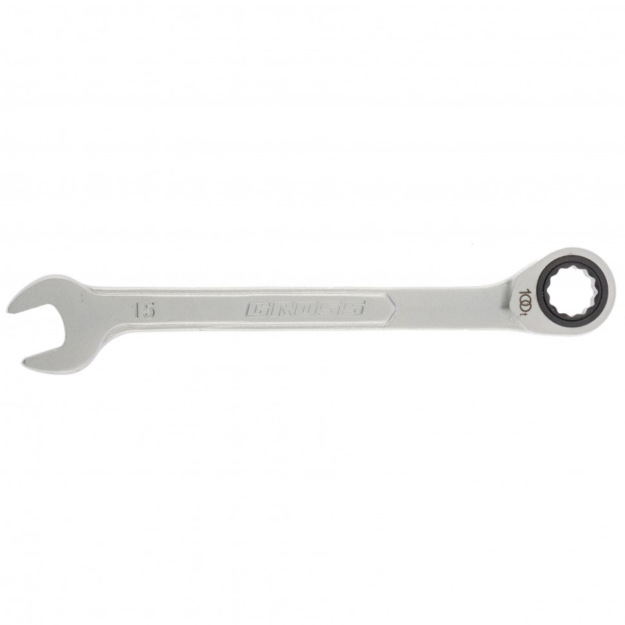 Ключ комбинированный трещоточный, 15 мм, количество зубьев 100 Gross 14853