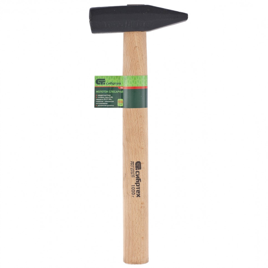 Молоток слесарный 1000 г, квадратный боек, деревянная рукоятка Сибртех 10222