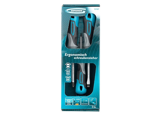 Набор отверток комбинированный 3 шт, S2, трехкомпонентная рукоятка Gross 12167