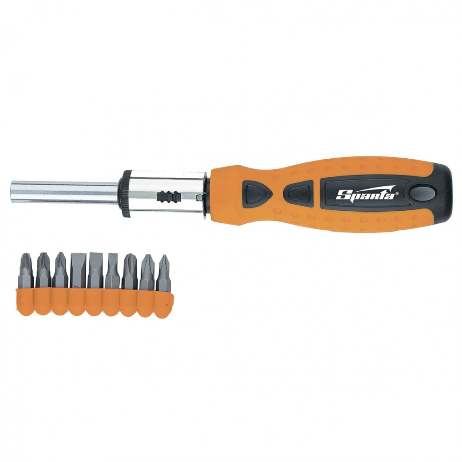 Отвертка реверсивная, набор бит, 10 шт, CrV Sparta 115455