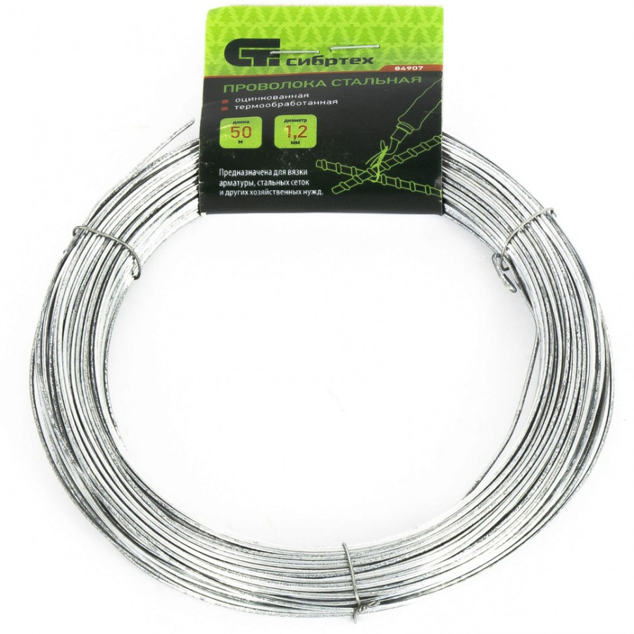 Проволока стальная 50 м, оцинкованная, термообработанная 1.2 мм Сибртех 84907