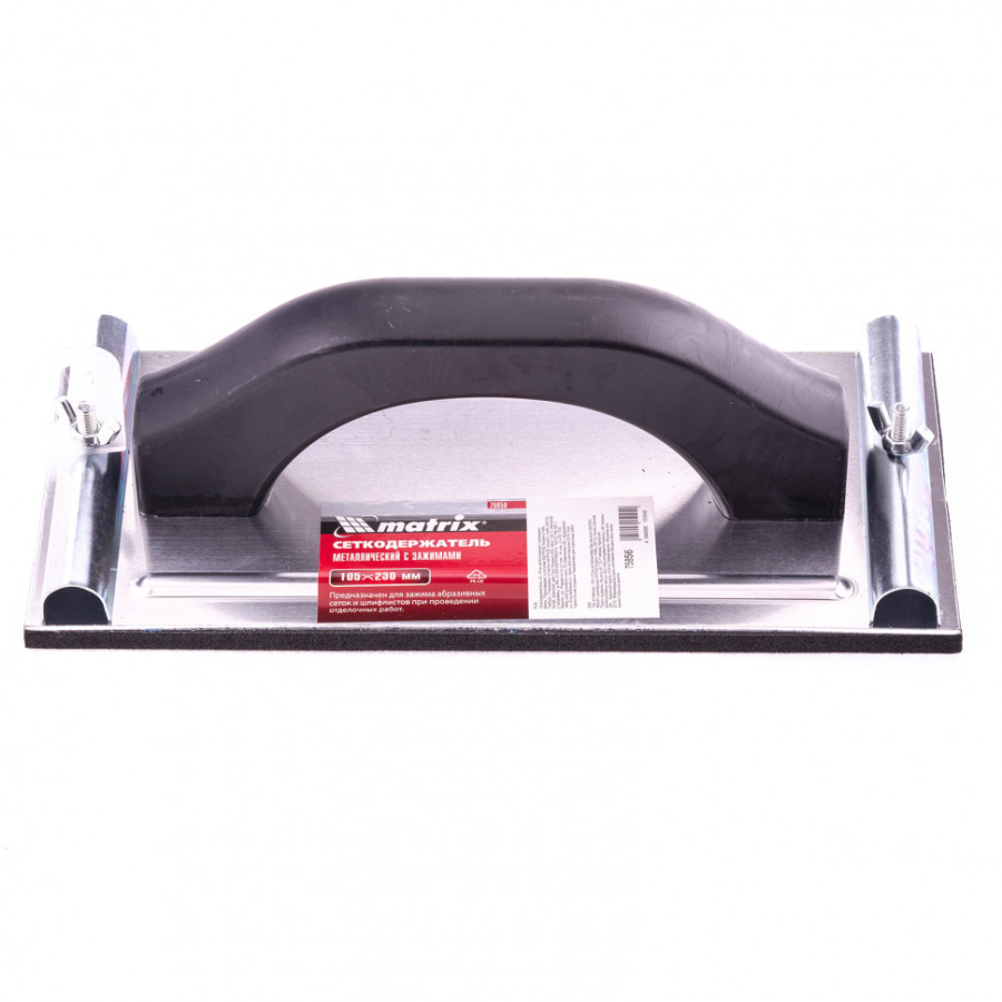 Сеткодержатель ТМ Matrix предназначен для шлифования и зачистки различных поверхностей, с помощью абразивных материалов (шлифлист, сетка) надежно фиксируя их с помощью металлических зажимов.