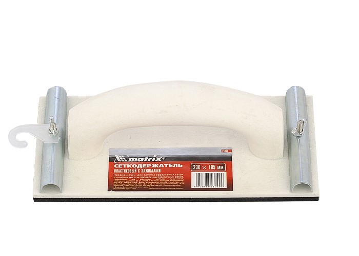 Сеткодержатель ТМ Matrix предназначен для шлифования и зачистки различных поверхностей, с помощью абразивных материалов (шлифлист, сетка) надежно фиксируя их с помощью металлических зажимов.