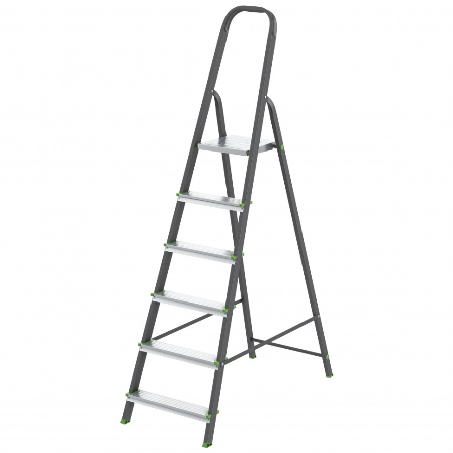 Стремянка, 6 ступеней, стальной профиль, алюминиевые ступени Россия Сибртех 97956